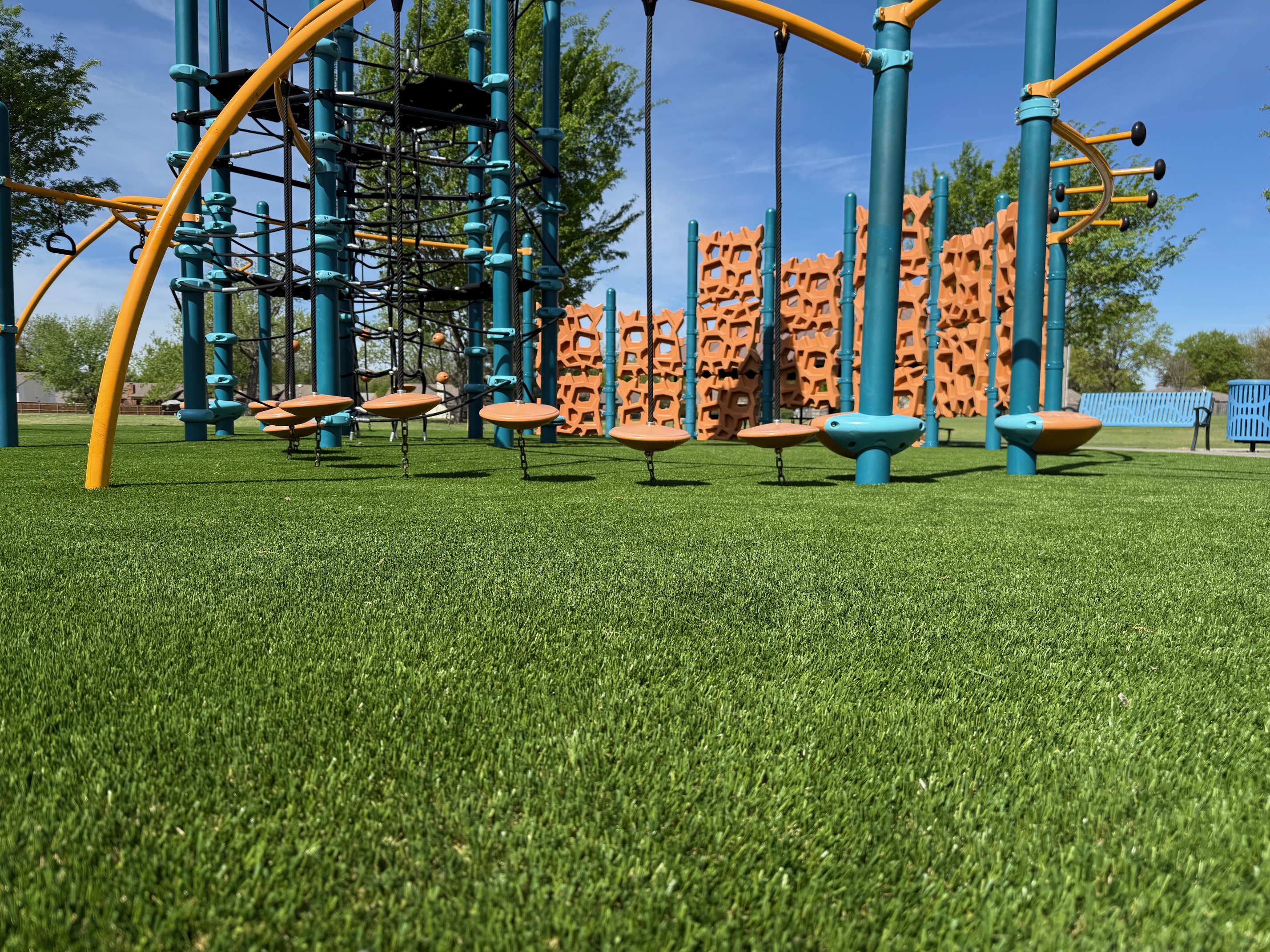 After evaluating long‑term needs, the City of Broken Arrow elected to replace the existing EWF and PIP surfacing with synthetic turf playground surfacing. The objective was to create a clean, uniform, and durable surface that could stand up to daily use while reducing maintenance requirements.
