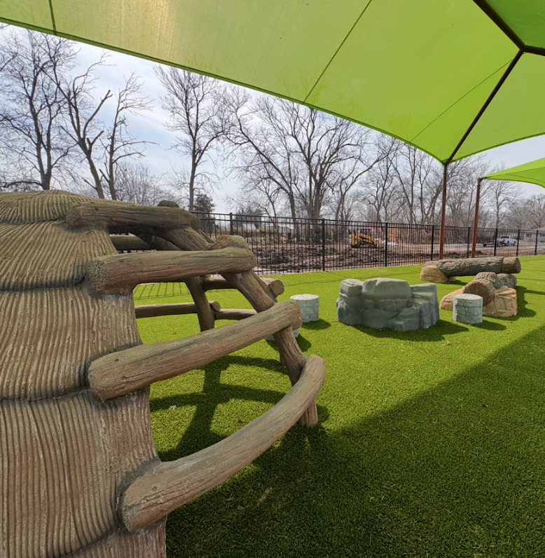 At Rockdale Learning Academy for the Peoria Tribe of Indians of Oklahoma, the original layout separated age groups, with the 5–12+ playground located on the opposite side of the building. It worked well on paper, but as the project developed, site conditions began to shift.