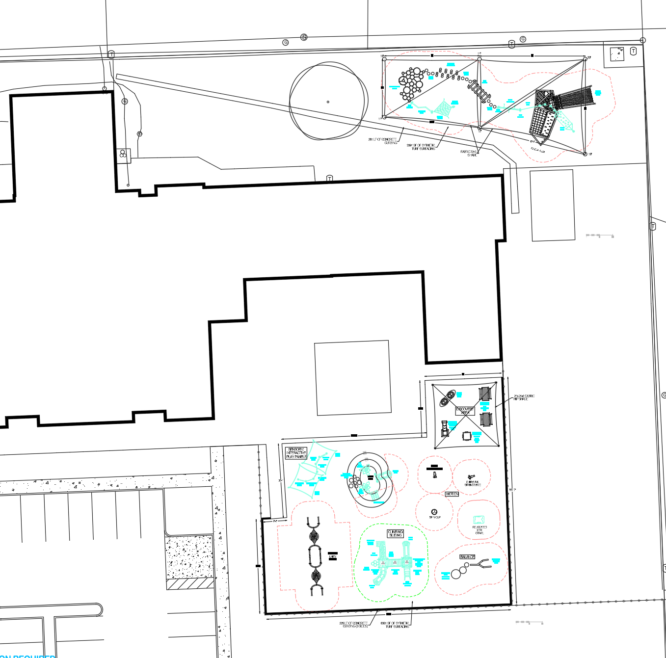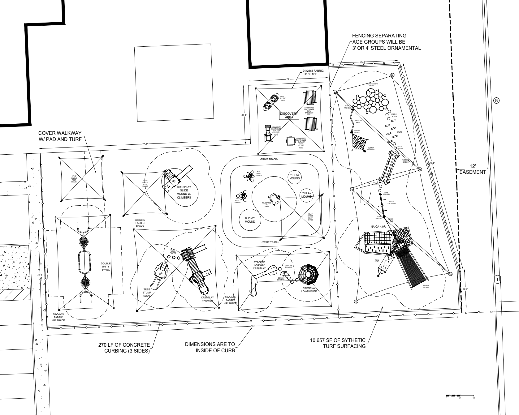 Rather than force it, the design pivoted. A low-pile turf track was introduced instead, allowing trikes to move freely while maintaining durability. By using a brown turf, the track still reads as a natural dirt trail—holding onto the original design intent while adapting to real-world conditions.